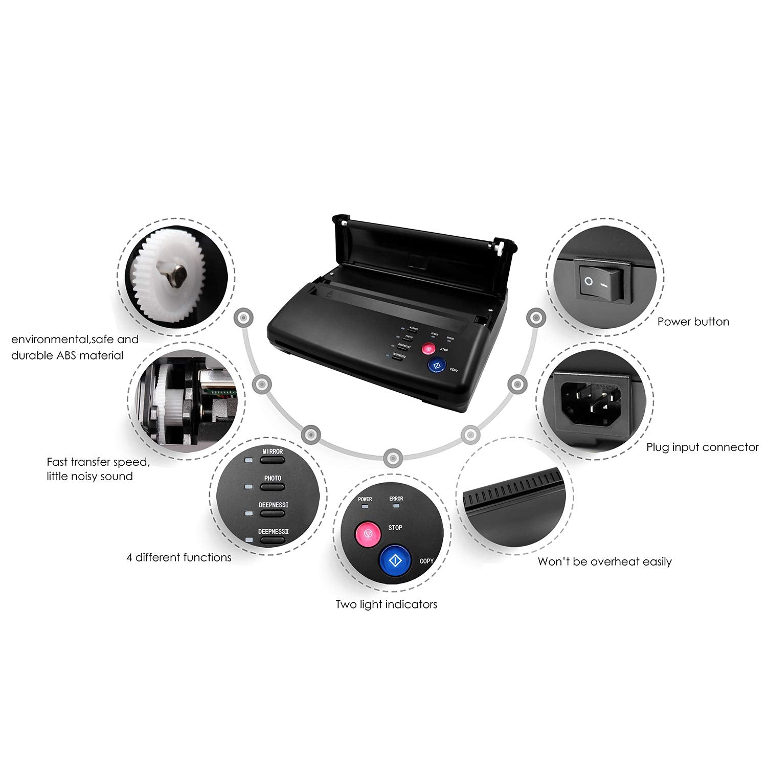Black Tattoo Stencil Transfer Machine Thermal Copier Printer Machine Zy003 Amazon De Home Kitchen